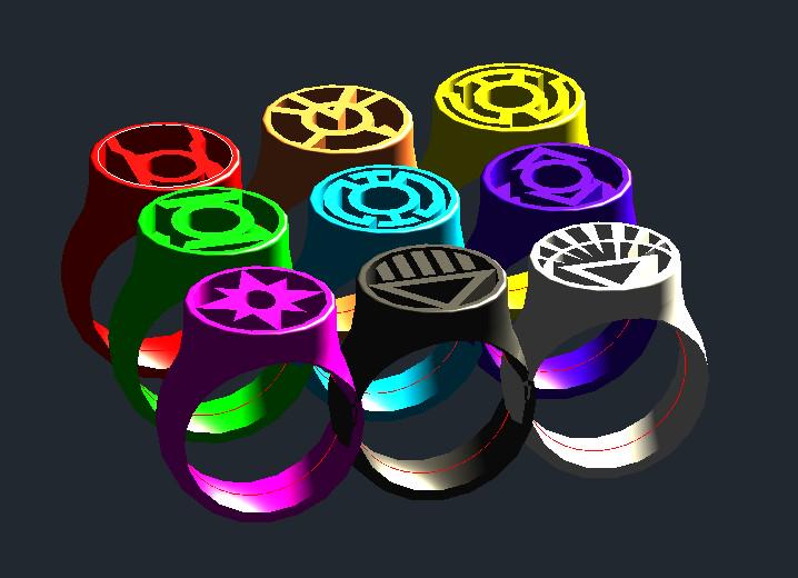 Make your own Lantern Corps Power Ring!!! Purchase includes all nine power ring styles! Also included is a sizing guide to help you scale the ring to the correct size, simply scale it by the given percentage to make the desired ring size. Base files are a size 10.